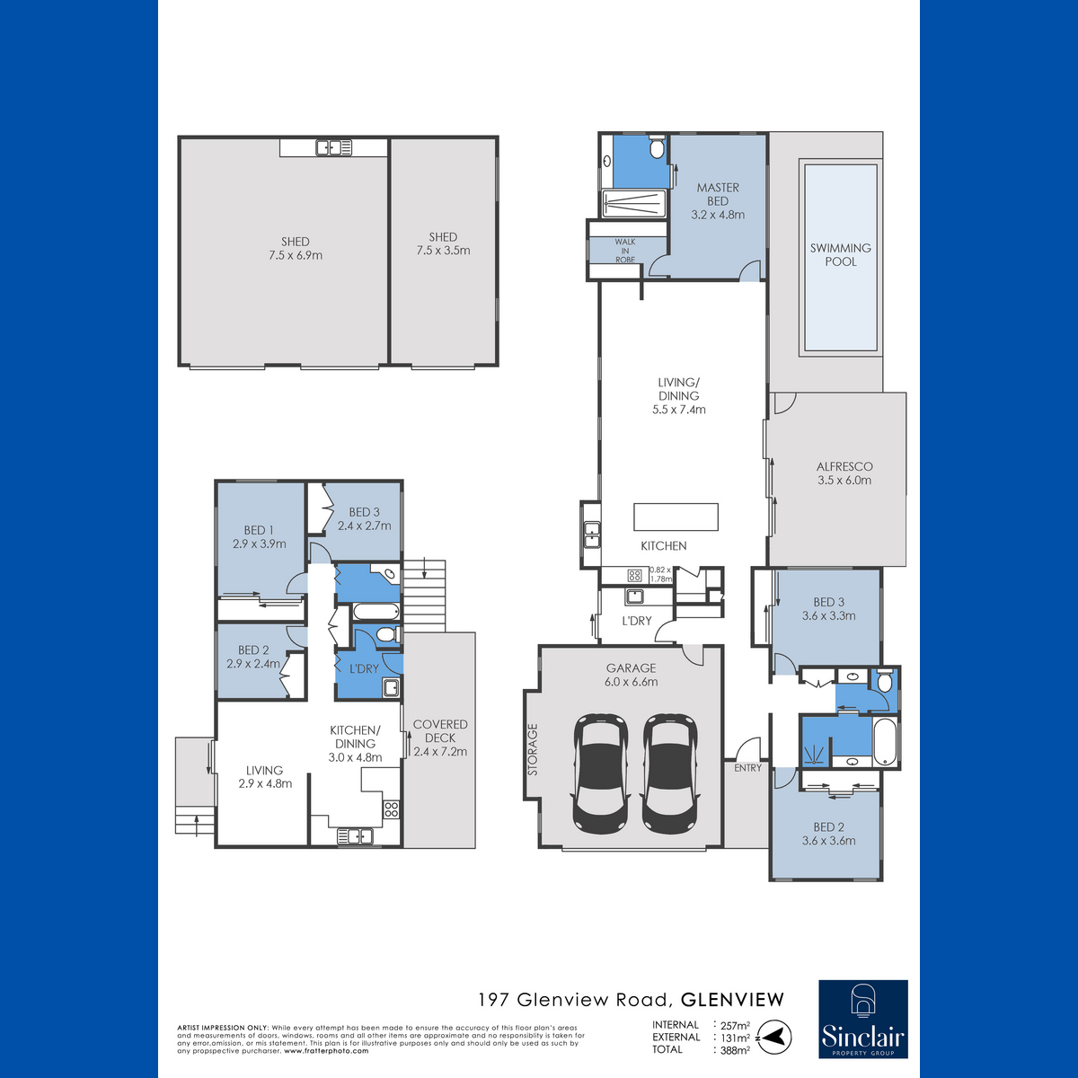 – Triple bay shed ideal for those extra toys with 15 amp power + water